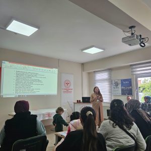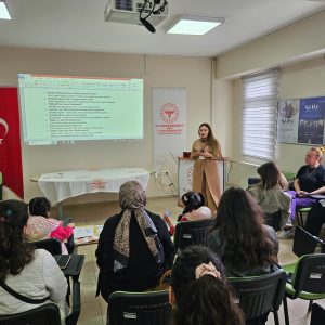 Uzm. Dr. Hilal AKTÜRK eğitime katılan anne adaylarına; gebelikte doğru beslenme, egzersiz, doğuma hazırlık, riskli durumlar ve anne adaylarının psikolojik sağlığı gibi önemli konularda eğitim verdi ve sonrasında katılımcıların sorularını yanıtladı.