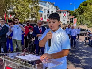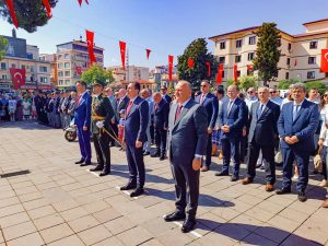 Törene Ünye Kaymakamı Ayhan Işık, Ünye Belediye Başkanı Hüseyin Tavlı, Garnizon Komutanı Oğuzhan Sarıkaya, siyasi parti temsilcileri, meslek odası başkanları ve sivil toplum kuruluşlarının temsilcileri ve vatandaşların katılımı ile saygı duruşunun ardından İstiklal Marşı okundu.