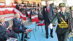 Bakırköy’deki Milli Savunma Üniversitesi (MSÜ) Hava Harp Okulu’nda düzenlenen diploma alma ve sancak devir teslim töreninde bir ilk yaşandı. Türk Silahlı Kuvvetleri tarihinde ilk kez Kara, Hava ve Deniz Harp Okullarının birincileri kadın öğrenciler olurken Kara Harp Okulu birincisi Akkuşlu Teğmen Ebru Eroğlu Cumhurbaşkanı Recep Tayyip Erdoğan’dan diplomasını aldı.